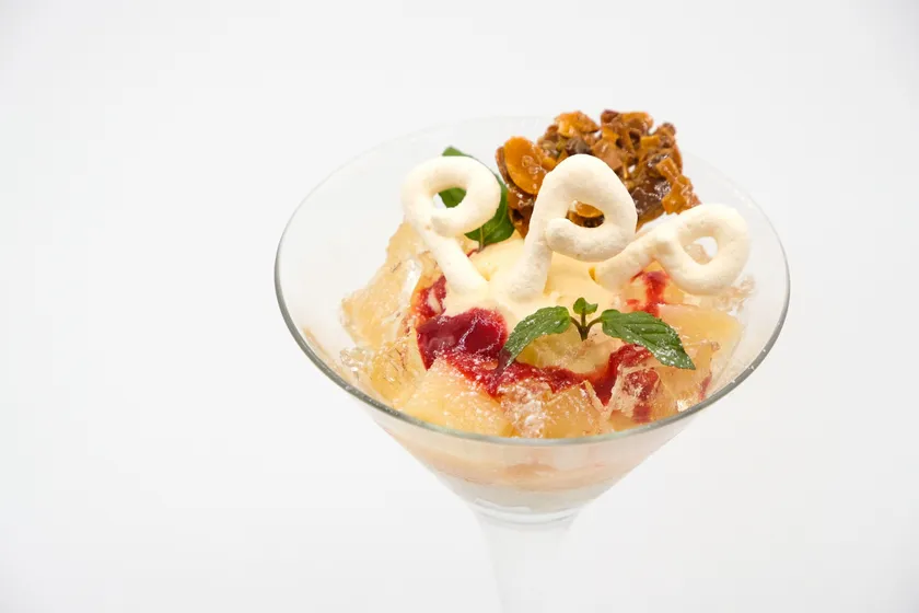 フレッシュな福島の桃を使った『飲むパフェ』をテーマに構成しました。さっぱりとした中にジューシーさもある、甘すぎないテイストに仕上げています。