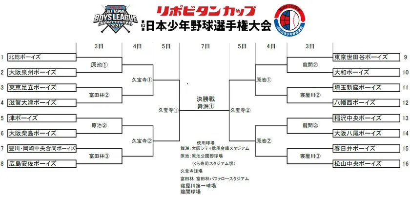 北総ボーイズ、埼玉新座ボーイズ、東京足立ボーイズ、東京世田谷ボーイズ