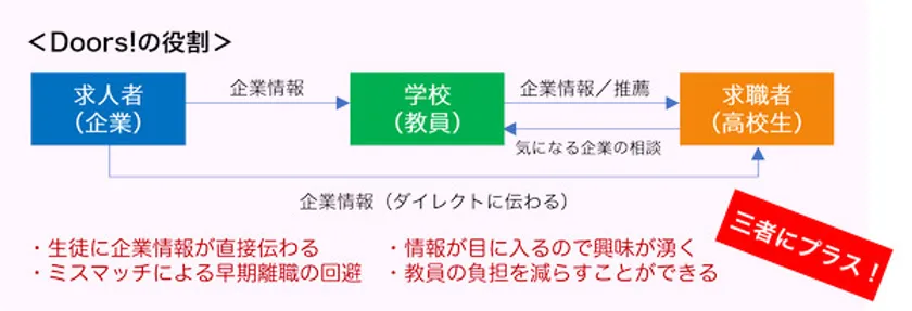 そのルールの線上で、企業・学校・高校生の三者いずれにもプラスとなる仕組みを検討した結果が「Doors! SAKURA」です。
