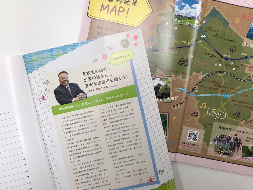 加えて、企業や行政機関をはじめ「佐倉市」に関わるさまざまな人たちが、ひとつのチームとなって市内の課題解決に向け動いていけるのではと考えたためです。佐倉市の担当課や佐倉商工会議所の担当者とも情報共有をおこない、本誌では、西田佐倉市長から高校生へのメッセージや、佐倉の魅力をマップ化したページも掲載されています。