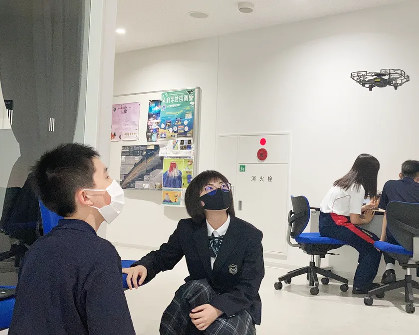 例えば、中学1年生は「遊びの中で想像する」をテーマにプログラムが構成されています。生徒が興味を持ちやすいよう、「ドラえもんの秘密道具を考える」を主題に、アイデア出しからディスカッション、発表、最終的にはアイデアを実現させる方法のひとつとして、プログラミングの手法を学びます。他にも、スクラッチプログラミングを使ってドローンを飛ばす体験などを通じ、アイデア具現化の方法を学びます。