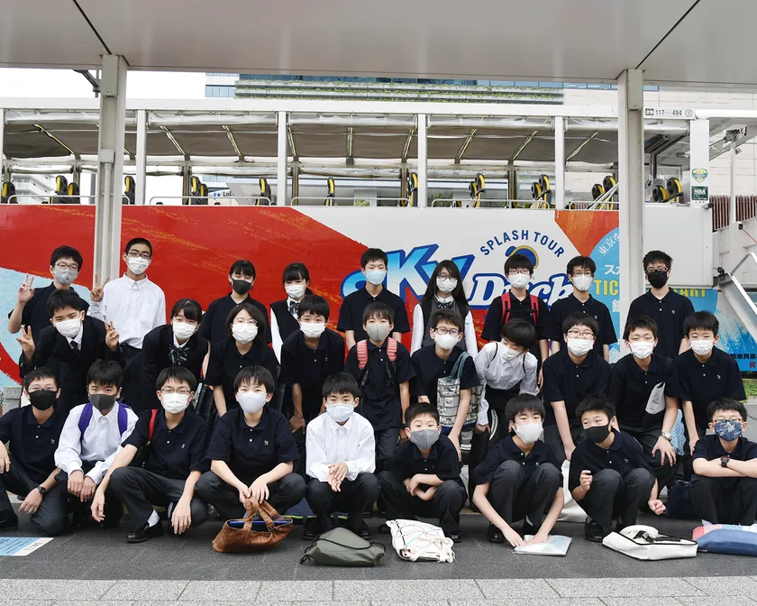 中学1年生では、現代の時代背景と豊洲地区についてマクロ的に捉え、世界を知るための土台作りを行います。具体的には、豊洲の街散策や企業訪問、水陸両用車を利用した湾岸エリアの海上視察、伝統文化体験学習により、その歴史や知識を体得します。その後、中学2年生で農村体験学習により日本文化への理解を深めたうえで、中学3年生では海外教育旅行に生徒全員で参加します。この一連の流れにより、生徒の世界への意識を広げ、真にグローバル社会へ適応した人材を育成します。