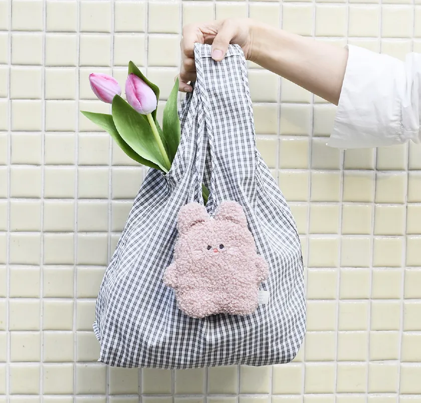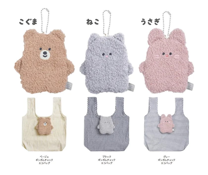 エコバッグは3種類のマスコットごとに色味が違うギンガムチェック柄です。