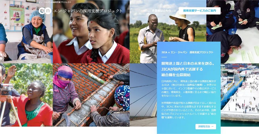 人材採用・入社後活躍のエン・ジャパン株式会社(本社:東京都新宿区、代表取締役社長:鈴木孝二)は、 2021年7月26日(月)より独立行政法人国際協力機構(JICA)の採用支援プロジェクトを開始しました。当社が運営する採用支援サービスを通じ、正社員の「総合職」を公募。 採用ターゲットの策定から「入職後の活躍」まで全面的にサポートいたします。下記、概要をご報告します。