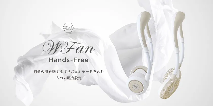 株式会社スパイスが2019年から販売開始したハンズフリー扇風機ダブルファンの販売数は、今年に入りシリーズ累計200万台を突破しました。ハンズフリー扇風機ダブルファンは、首にかけて首元や顔周辺に風を送る暑さ対策グッズで、いつでもどこでも風を持ち運ぶことができます。扇風機には見えないヘッドフォンのようなデザインのため、おしゃれアイテムの1つとして身に付ける人も多くいます。