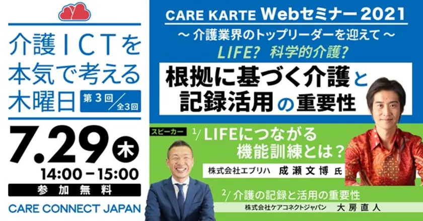 介護ICTを本気で考える木曜日! 「CAREKARTE WEBセミナー2021 ~介護業界のトップリーダーを迎えて~」 第3回目を2021年7月29日に開催