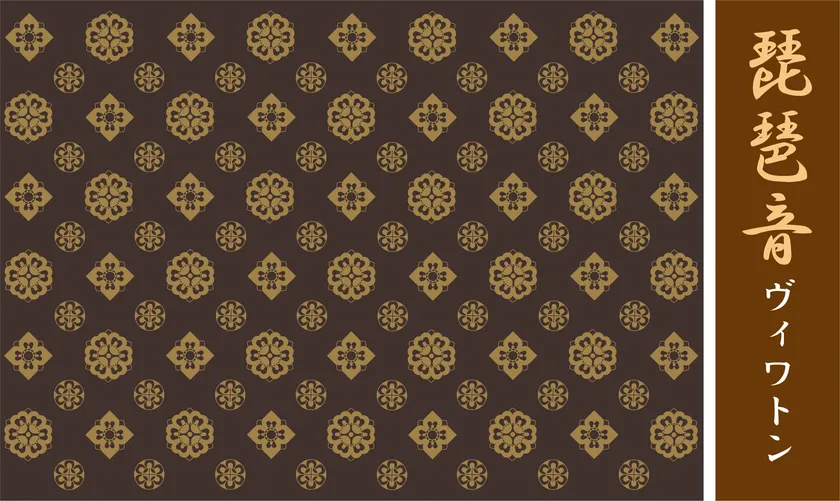 その文様の呼称を、遥か古来、彼方西方から伝わった「琵琶の音曲」を想起させる「琵琶音」BIWATONE (ヴィワトン)と命名しました。