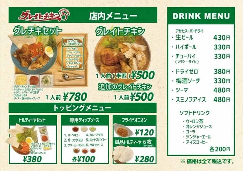 「グレイトチキン」店内メニュー