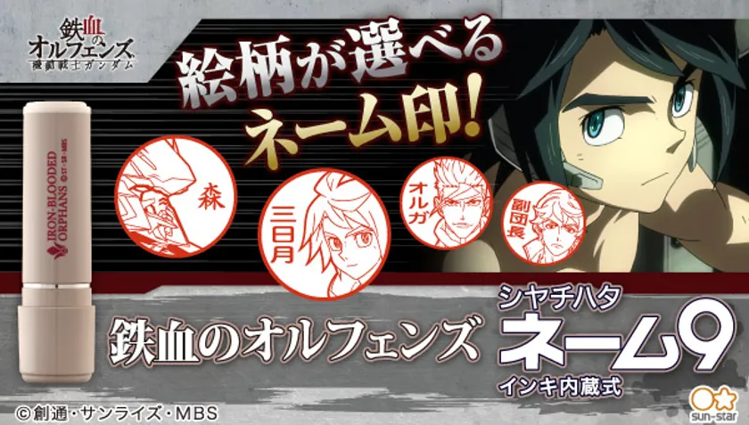 サンスター文具株式会社(本社:東京都台東区、代表取締役社長:小林 大地)は、『機動戦士ガンダム 鉄血のオルフェンズ』より『シヤチハタ ネーム9』(全1種類 2,970円 税込/送料・手数料別途)を、バンダイナムコグループ公式通販サイト「プレミアムバンダイ」( http://p-bandai.jp/?rt=pr )内のショップ「サンスターステーショナリーストア」にて、2021年7月20日(火)13時より予約受付を開始いたしました。(発売元:サンスター文具株式会社)
