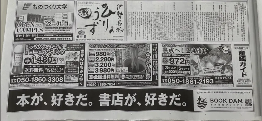 株式会社ブックダム(本社:東京都豊島区、代表取締役:菊池 大幹、以下「当社」)は、産経新聞朝刊の大阪本社版(大阪府下除く)を対象に、メッセージ広告の掲出を2021年7月20日から7月30日まで展開しています。掲載エリアは日によって異なりますが、期間内で計100段分のサイズに及ぶ規模になります。