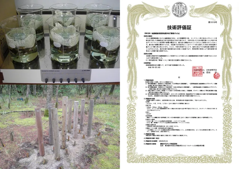 地盤調査・地盤改良事業など住宅・建材に関わる業務を行う兼松サステック株式会社(所在地:東京都中央区、取締役社長:高崎 實、東証一部 証券コード:7961)は、自社工法である『環境パイル工法』、『環境パイルS工法』で使用する地盤補強用保存処理木材『環境パイル』の耐久性について、公益社団法人日本材料学会の『地盤改良に関わる技術認証制度』に評価申請を行い、技術評価されました。(評価証明番号:第1019号)
