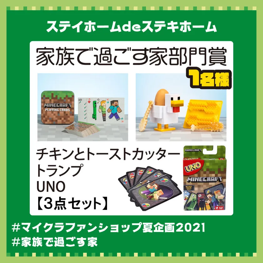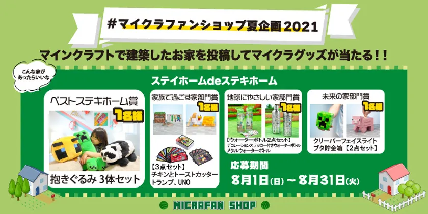 マイクラファン・ショップ公式Instagramにて マインクラフト公式グッズが当たる 「#マイクラファンショップ夏企画2021」 その名も<ステイホームdeステキホーム>がスタート!