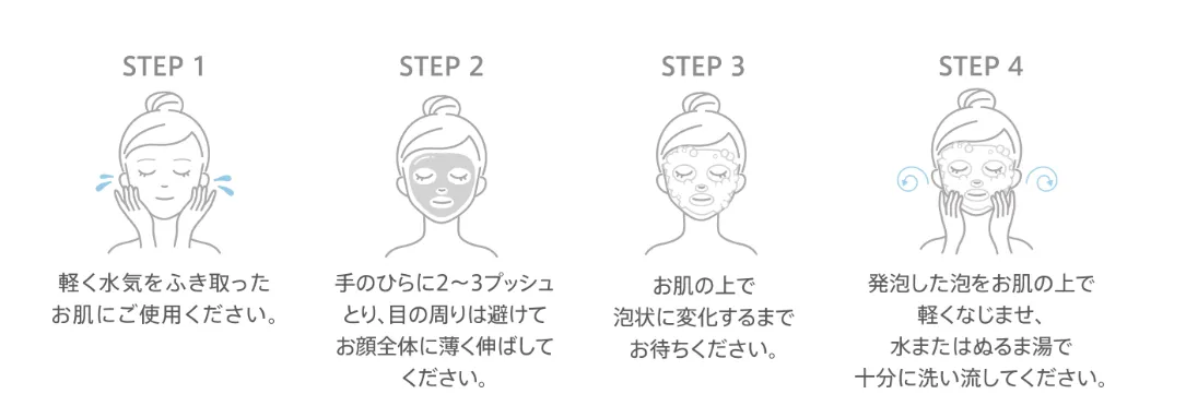 ・十分に発泡した後2~3分放置すると、より頑固な毛穴汚れや角質を浮かせることができます。