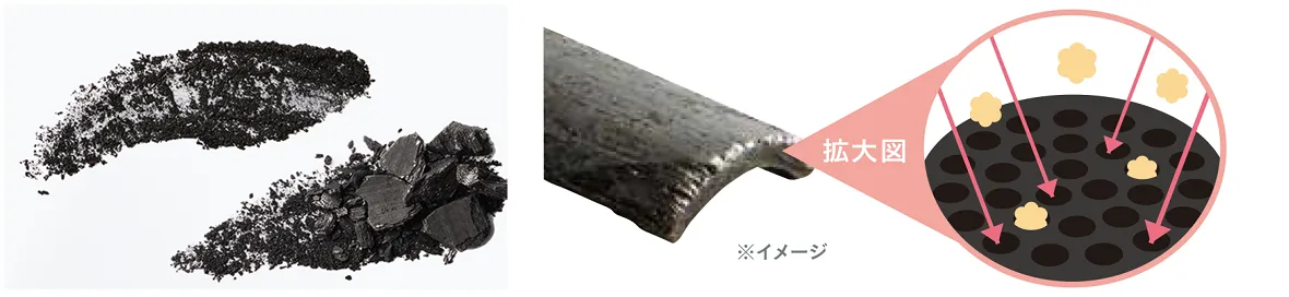 Point2:無数の穴を持つ竹炭パウダー*1が汚れを吸着