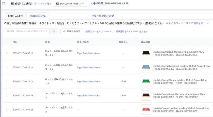 「tool4seller(ツールフォーセラー)」の相乗り出品通知機能は、指定されたASINのカートボックスの状況を監視できます、Eメール、APPプッシュ通知などを介してカートボックスの情報を販売者に送信します。