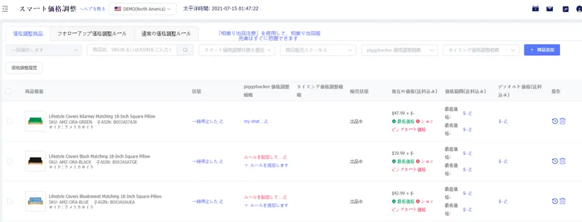 「tool4seller(ツールフォーセラー)」スマート価格調整機能を使用すると、価格変更ルールを設定するだけで、Amazonセラーセントラルにログインすることなく、迅速かつ正確に価格を調整できます。相乗り出品通知に合わせて、価格調整ルールに従って、カートボックスの獲得の最終的な勝者になりましょう!