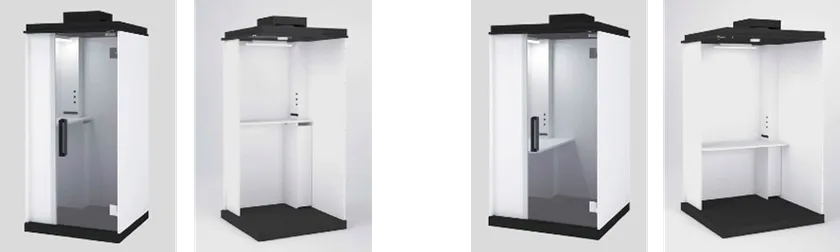 「One-Bo」は、オンライン会議が当たり前になったことにより生まれた3つの新たな課題(1.イヤホンボイス公害 2.会議室難民 3.リモート漏洩)を解決するために、Zoomと共同企画したパーソナル・ミーティング・ボックスです。プラザクリエイトが持つ、証明写真ボックス事業のノウハウや自社工場のプリント技術を用いて開発することで、品質を保ちながら導入しやすい価格を実現しています。