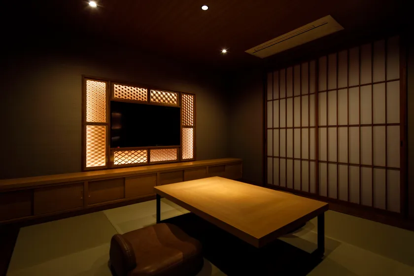 香住の自然の中にある陰影をコンセプトに光と陰を格子のシルエットを用いて表現したお部屋です。