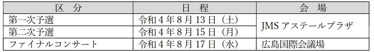 ・ コンクールファイナルの優勝者には、令和5年に、第2回ひろフェスの開催1年前PRイベントの位置付けで開催する、広島交響楽団や広島市の姉妹都市である大韓民国・大邱広域市立交響楽団のコンサートに指揮者として出演してもらうことを検討します。