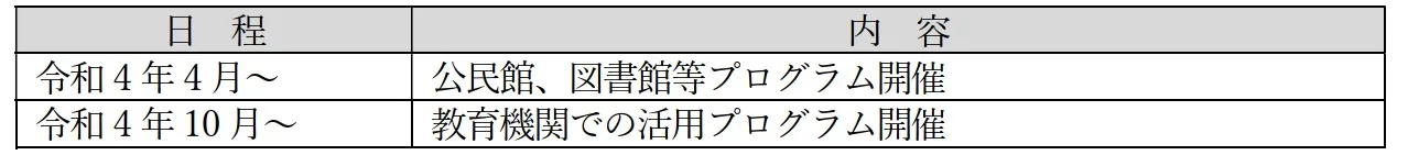 ・ 市内の公民館、図書館等に、メディア芸術(アニメーション、映画、マンガ等)の専門家を招き、メディア芸術に関する教育プログラムを実施します。