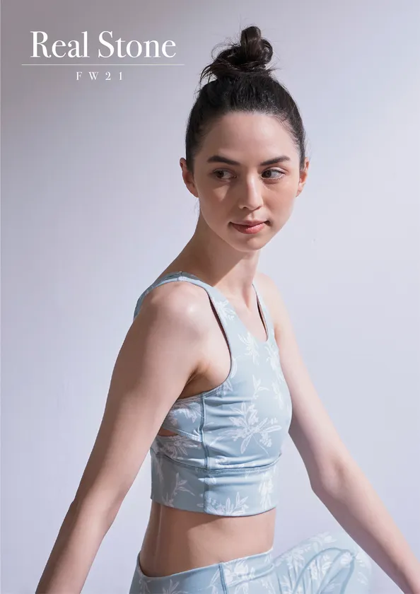 また、21年秋冬のコレクションの一部から環境に配慮した植物由来の素材を使用しております。ヨガでの運動性、快適性を保ちつつ、サステナブルな素材を取り入れたプロダクトラインを提供することにより、新しいリアルストーンを表現しています。