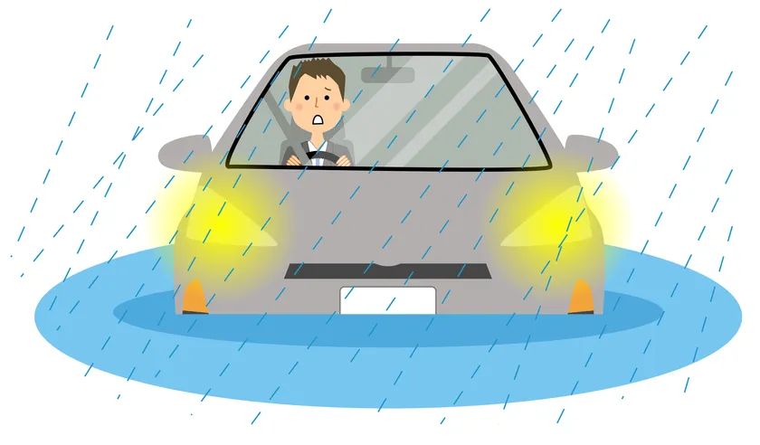 豪雨による自動車の水没イメージ