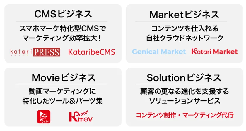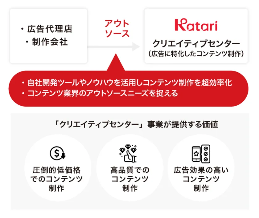 株式会社カタリベは、動画関連のサービスを2020年に開発し、これによりスマホマーケティングに必要な仕組みを一気通貫で提供可能にしました。また、そのビジネス基盤を活用した「クリエイティブセンター」事業を創出し、全国の広告代理店や制作会社のアウトソースニーズを捉えました。