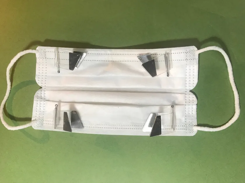 マスクは毎日取替えるので、簡単な取外しが必要です。また、個人の好みで多様なマスクが使用されています。毎日の取外し、どのような材質のマスクにも対応できるように特殊な両面テープで取付可能にしました。新型「マスケイド」の重さはわずか3グラムなので、がっちり固定する必要はありません。むしろ軽く引っかかっているだけで十分です。マスクと肌の間に挟まっているので落ちることはありません。お気に入りのマスクにも毎日洗って取付可能です。
