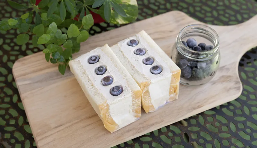 埼玉県秩父市の大平戸農園のブルーベリーを贅沢に使用し、通常の冷凍の温度帯-20℃だと硬くなりすぎるため、-10℃の冷凍で新食感を実現。パンはふわふわもちもちなのに、生クリームはシャリっと甘い!その賞味期限はなんとわずか10分と、一度食べたらハマること間違いなしの口溶けリッチな全く新しいアイスケイクです。