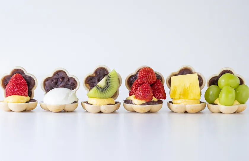 熱海の市の花でもある梅の花をかたどった最中に又一庵の粒あんを詰め、コクのあるバタークリームの上には季節のフルーツ(マスカルポーネ―チーズ)をのせた手のひらサイズの可愛らしい最中。