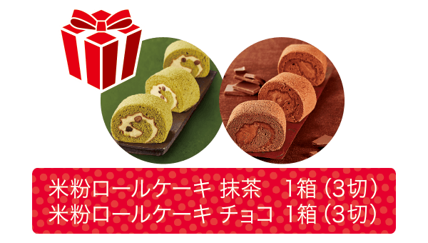 米粉ロールケーキ 抹茶、チョコ 各1個プレゼント