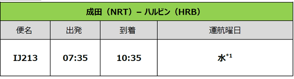 スプリング・ジャパン 2022年冬ダイヤ 成田→ハルビン 増便決定