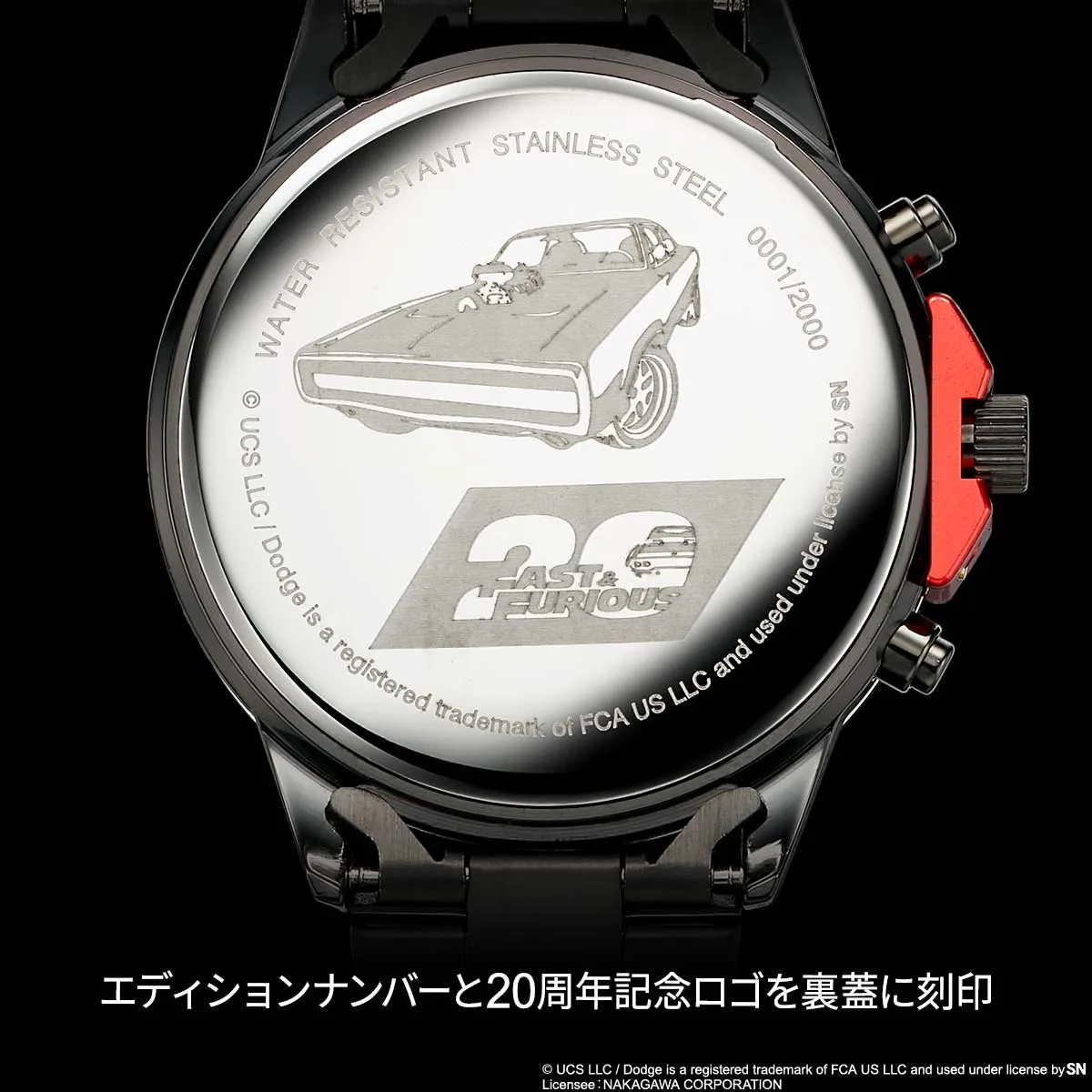『ワイルド・スピード』シリーズ20周年にちなみ、世界限定2000点で販売。裏蓋にエディションナンバーが刻印されます。