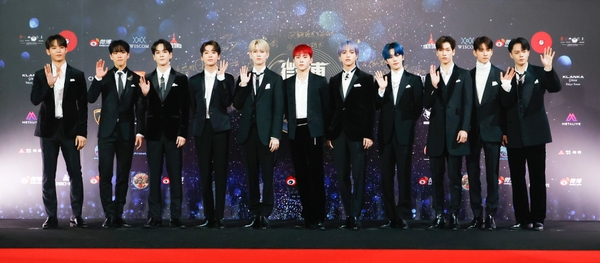 イベント終了後、囲み取材に応じたJO1。受賞した気持ちを聞かれると、川尻蓮が「まずはこのような素敵な賞をいただけて本当にありがたく思います。そして、この賞をいただけたことで少しずつではありますが、日本の外にも僕たちの想いだったり、パフォーマンスが届いているなと実感することができたので、今後の糧になります」と答えた。