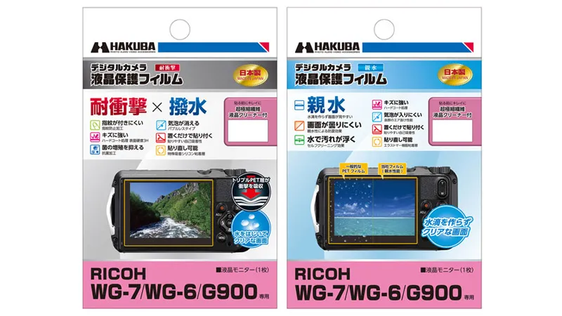 ハクバ写真産業株式会社 (本社:東京都墨田区)は、RICOH WG-7用液晶保護フィルムに「耐衝撃×撥水」タイプと「親水」タイプの2製品を発売いたします。