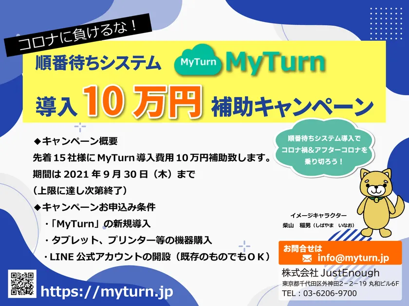 コロナに負けるな! 順番待ちシステム「MyTurn」導入10万円補助キャンペーン開始