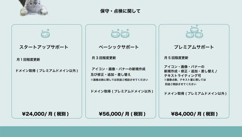サイトの運用・保守費用(サーバー・ドメイン含む):24,000円 ~