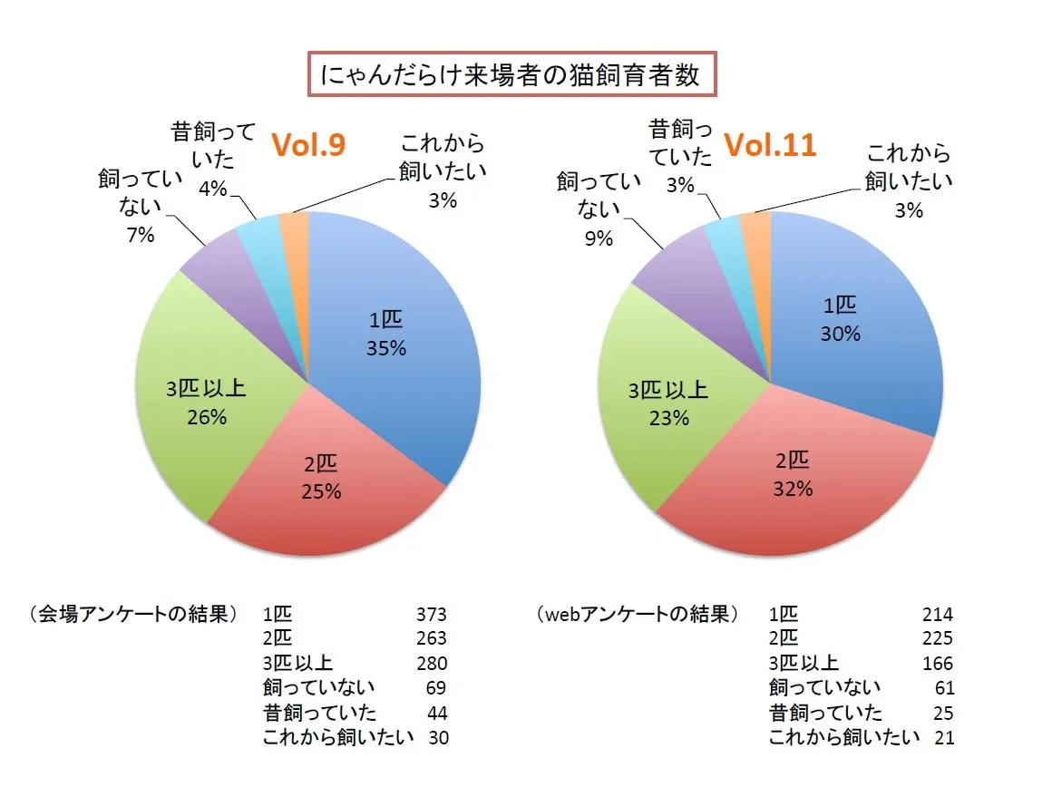 また、毎回実施しているアンケートでは、来場者の約9割が猫飼育者という結果が出ています(そのうち半数以上が多頭飼い)。