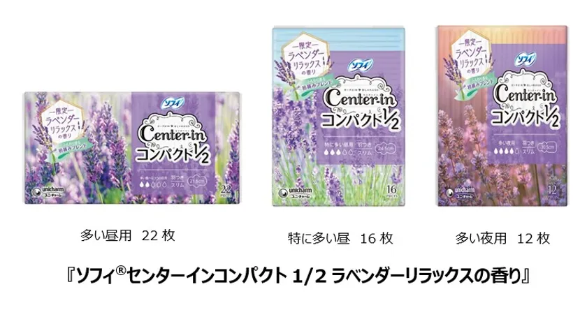 ユニ・チャーム株式会社(代表取締役 社長執行役員:高原豪久)は、持ち運びに便利な生理用ナプキン『ソフィ(R)センターインコンパクト1/2』シリーズと、天然の香りを配合したパンティライナー『ソフィ(R)Kiyora』シリーズから、生理期間中も気持ちが癒される「ラベンダーリラックスの香り」を、2021年9月7日に全国で期間限定発売します。
