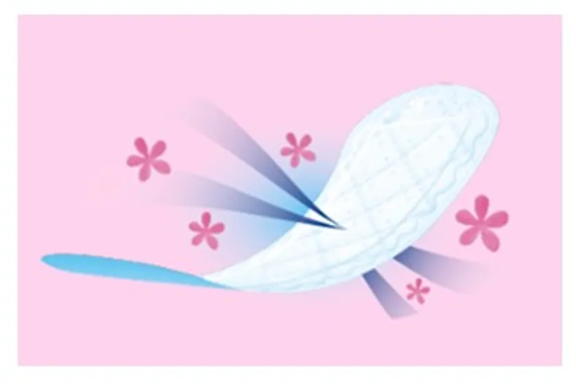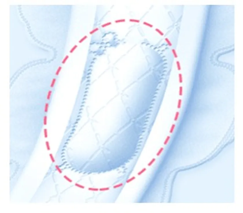 ナプキン中央がぽっこりふくらみ、身体にフィットして吸収します。