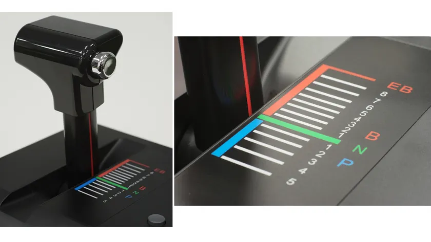 「制動(ブレーキ)」:ハンドルを前に倒すことで、8段階のブレーキと「EB(非常ブレーキ)」をかけることができます。全部で15段階の操作すべてにノッチがあり、簡単に思い通りの位置で止めることができます。