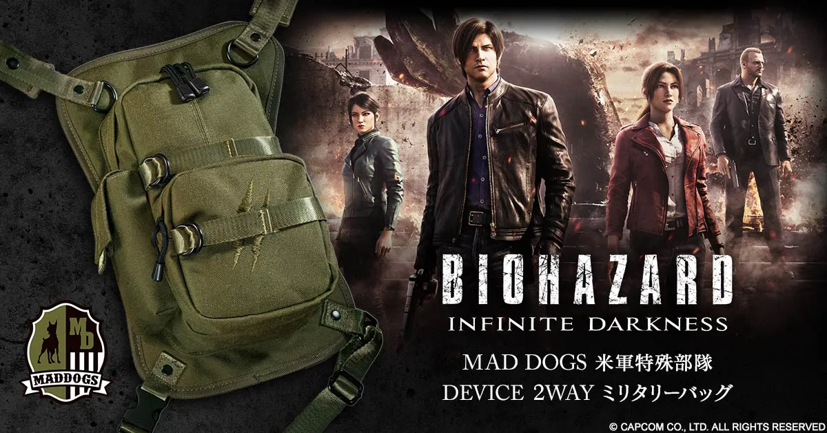 全世界でシリーズ累計出荷本数1億1千万本以上を超えるサバイバルホラーゲームの金字塔「バイオハザード」初の連続CGドラマとして、Netflixで独占配信中の『バイオハザード:インフィニット ダークネス』より、米軍特殊部隊「MAD DOGS」の装備品をイメージしたミリタリーテイストのバッグが登場!