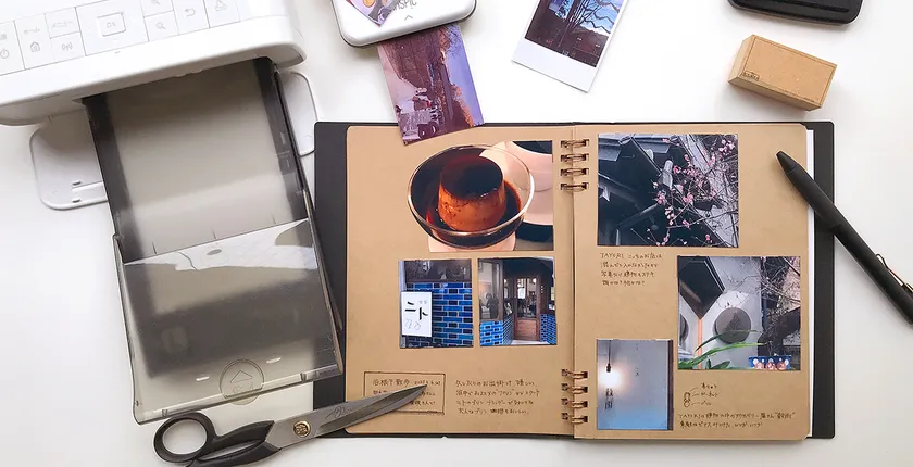お店でプリントしてもらった写真はもちろん、家庭用プリンターやスマホプリンターでスマホの中の画像をプリントして、ペタペタ貼り付けられます。旅行ではないし、ただの買い物でもない。ちょっと一日お出掛けした時の記録、いつもと違う何かおいしいものを食べた記録、スマホに残した日々の記録をとっておきにするために「わたしコラージュ」に貼り付けてとっておくことができます。