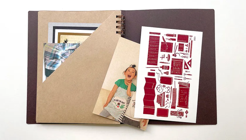 きっかけは、「+lab」のデザイナーがちょうどいいサイズのスクラップブックがなく、思い出の紙ものをどっさりとため込んでいたことです。いつか整理整頓してきれいにまとめようとしても、その「いつか」はなかなかきません。