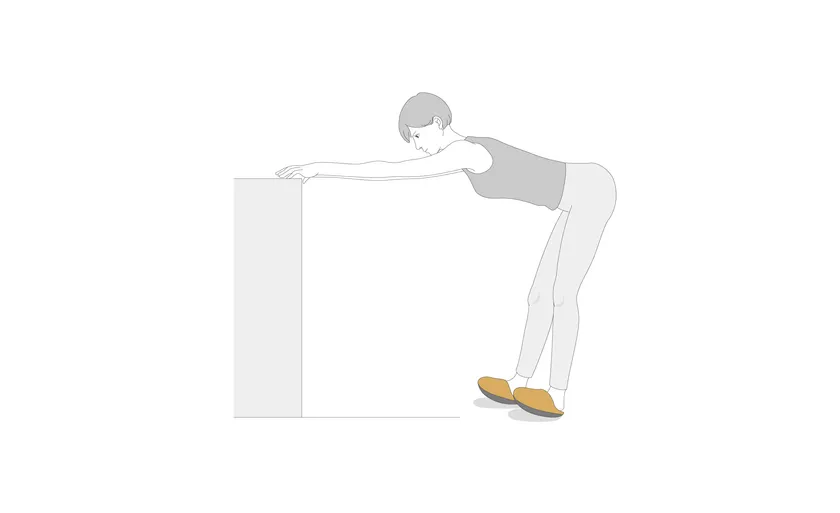 キッチン台や椅子に手を置き、かかとをゆっくり下ろしてつま先を上げると、ふくらはぎが伸びて、足の疲れをリフレッシュできます。