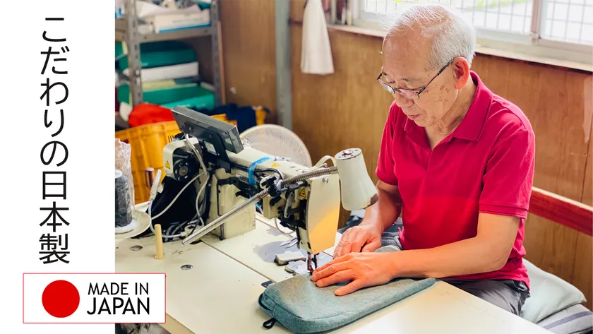 縫製作業は浜松の縫製職人さんが手作業で担当しています。職人さんとよく話し合い、デザインや材料や縫製のアイディアをもらい、試作品を何度も何度も作り直しました。
