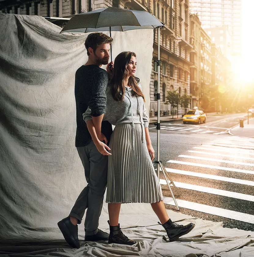 ニューヨークの交差点(Cross)を背景に、2人が共に歩みを進める様子を表しています。