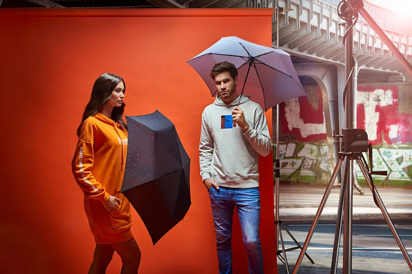 イメージビジュアルはすべて2人で写っており『共に』を表しています。また背景と傘のデザインがリンクしています。