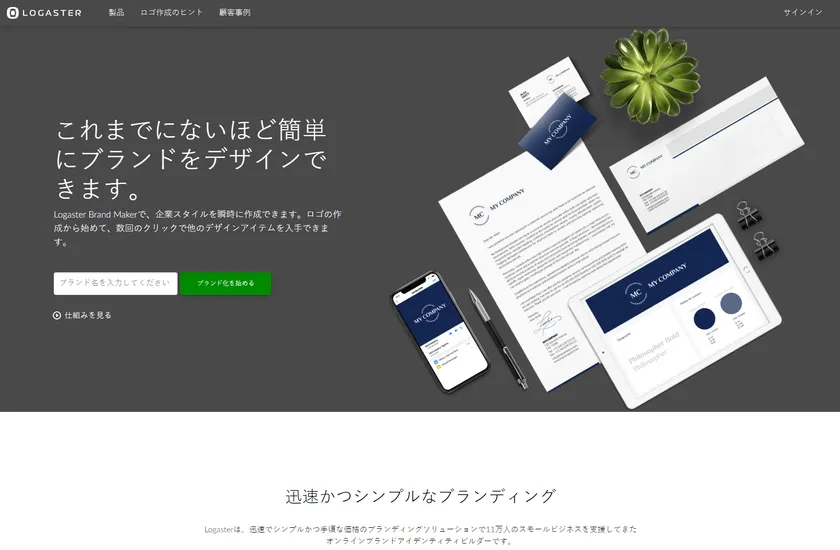 Logasterは、日本で最も人気のあるロゴやコーポレート・アイデンティティ作成ソフトの一つです。起業家が数分でロゴやコーポレート・アイデンティティを作成するのを支援します。このオンラインサービスを使えば、特別なデザインの知識がなくてもブランド名と事業分野を入力するだけで数十種類のロゴを作成できます。多くのユーザーが、当サービスの助けを借りて、すでに1100万個のロゴを作成しています。