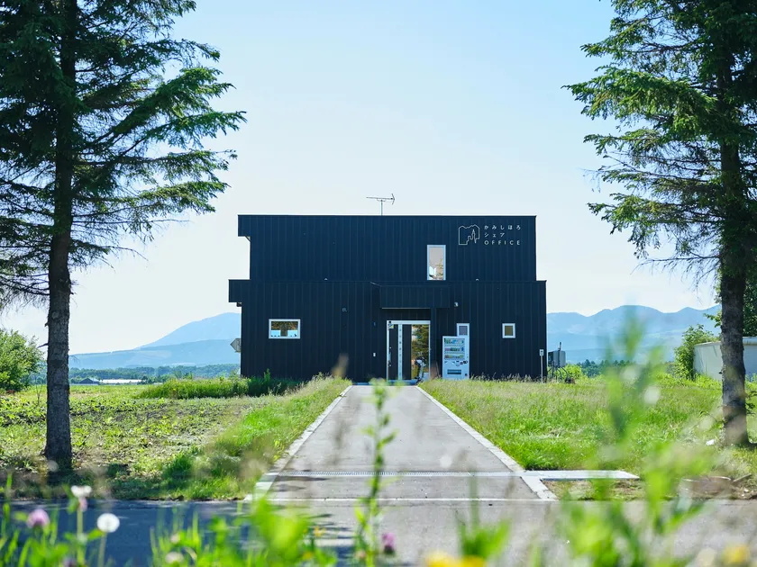 「都会と田舎をシェアする新しい働き方」がコンセプトの上士幌町唯一のシェアオフィス です。同じスペースを複数人で「シェア」するだけでなく、都会と田舎を「シェア」する新しい働き方を提案しています。北海道十勝を象徴する広大な畑のロケーションの中に位置し、窓からはナイタイ高原牧場や東大雪の山々を望むことができます。